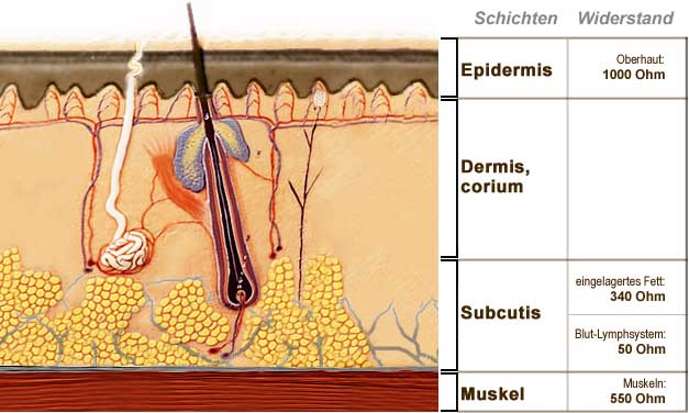Unser Körper ist schichtweise aufgebaut, jede Schicht hat einen eigenen Widerstandswert:
